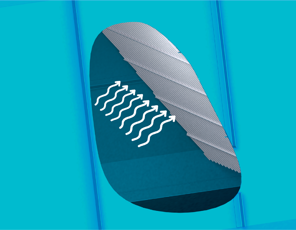 通過一級脫水室后,空氣中的液體含量大部分已經(jīng)被去除,少量的液體隨空氣進(jìn)入到設(shè)有特殊設(shè)計的折流板二級脫水室。二級脫水室折流板采用流線型多波設(shè)計,具有脫水效率高,阻力小,結(jié)構(gòu)堅固耐用等特點(diǎn)。并且二級脫水室風(fēng)道截面積巨大,空氣在此的流動速度可以降至2米/秒,以保證折流板發(fā)揮很大的脫水效率。經(jīng)過三層弧形擋板和折流板脫水后的空氣即可通過煙囪排放。